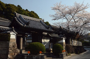 天平18年(746)行基によって創建された真言宗室生寺派の寺院。最盛期には36もの塔頭を擁したが松永久秀により焼き払われ、現在の本堂は江戸時代に再建されたもの。本尊は薬師如来坐像(像高約1.5m、町指定文化財)で、行基が制作したと伝えられている。像高約20cmの薬師三尊像があり、「南都椿井大仏師次郎作」の銘がある。金堂西に磨崖石仏群(町指定文化財)があり、鎌倉時代に元寇を迎え敵国調伏を願って線刻された「不動明王立像」(高さ1.77m)、嶋左近の妻の生前供養で彫られたとみられる「地蔵菩薩」など鎌倉時代後期~江戸時代前期にかけて14体の仏が刻まれている。境内の行基の供養塔である五輪塔などのほかに墓地にも石造物が多い。