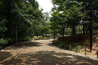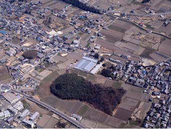 馬見丘陵公園北エリアの東部にある帆立貝形古墳で、墳丘の長さは92m、後円部直径80.6m、前方部幅32m、前方部長11.4mを測ります。周囲には周濠と外堤が巡っています。乙女山古墳とともに典型的な帆立貝形古墳として知られています。周濠部を散策することができ、大きな後円部に比べて短く低平な前方部を観察することができます。