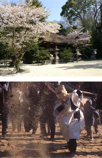『日本書紀』天武天皇4年(675)条に記事が見られる廣瀬神社は、奈良盆地の多くの河川が合流して大和川となる「川合」に位置しています。社伝では崇神天皇の時代に龍神のお告げがあり、一夜にして池が陸になり橘が生い茂ったので龍神を祭ったのが始まりとされています。祭神は主神が大忌神(おおいみのかみ)の異名を持つ若宇加能売命(わかうかのめのみこと)で、水の神、水田を守る神、五穀豊穣の神として篤く信仰されています。現在に残る最古の建物は、正徳元年(1711)に造営された本殿です。この本殿は一間社春日造の様式をよく伝えるものとして、奈良県指定文化財(建造物)に指定されています。毎年2月11日に行われる砂かけ祭りは御田植祭で、砂を雨に見立ててかけ合い五穀豊穣を祈る祭りです。この祭りは河合町の歴史を考える上で重要なものとして、河合町指定無形民俗文化財に指定されています。