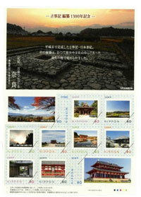トップページ > 掲載メディア一覧 > オリジナルフレーム切手「古事記編纂1300年記念 記紀・万葉でたどる奈良 ~飛鳥周辺・平城京周辺~」