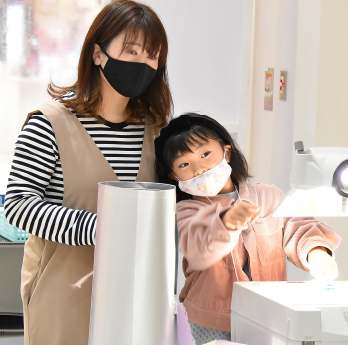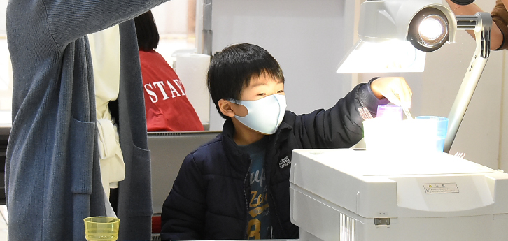 2021年1月にアートプログラムのプレイベントを開催。まずは永渕先生が子どもたちに「光」について質問した後、木と和紙の関係を説明していよいよ実験タイムへ。子どもたちは紙と光をテーマに、さまざまな種類の和紙やライト、虫めがね、顕微鏡、プロジェクターなどの道具を使って試行錯誤を繰り返し、自由に観察と創作を行いました。和紙をちぎってみる、くしゃくしゃにしてみるというだけでもさまざまな発見があり、予定時間が過ぎてもまだやりたいと取り組む姿が目立ちました。