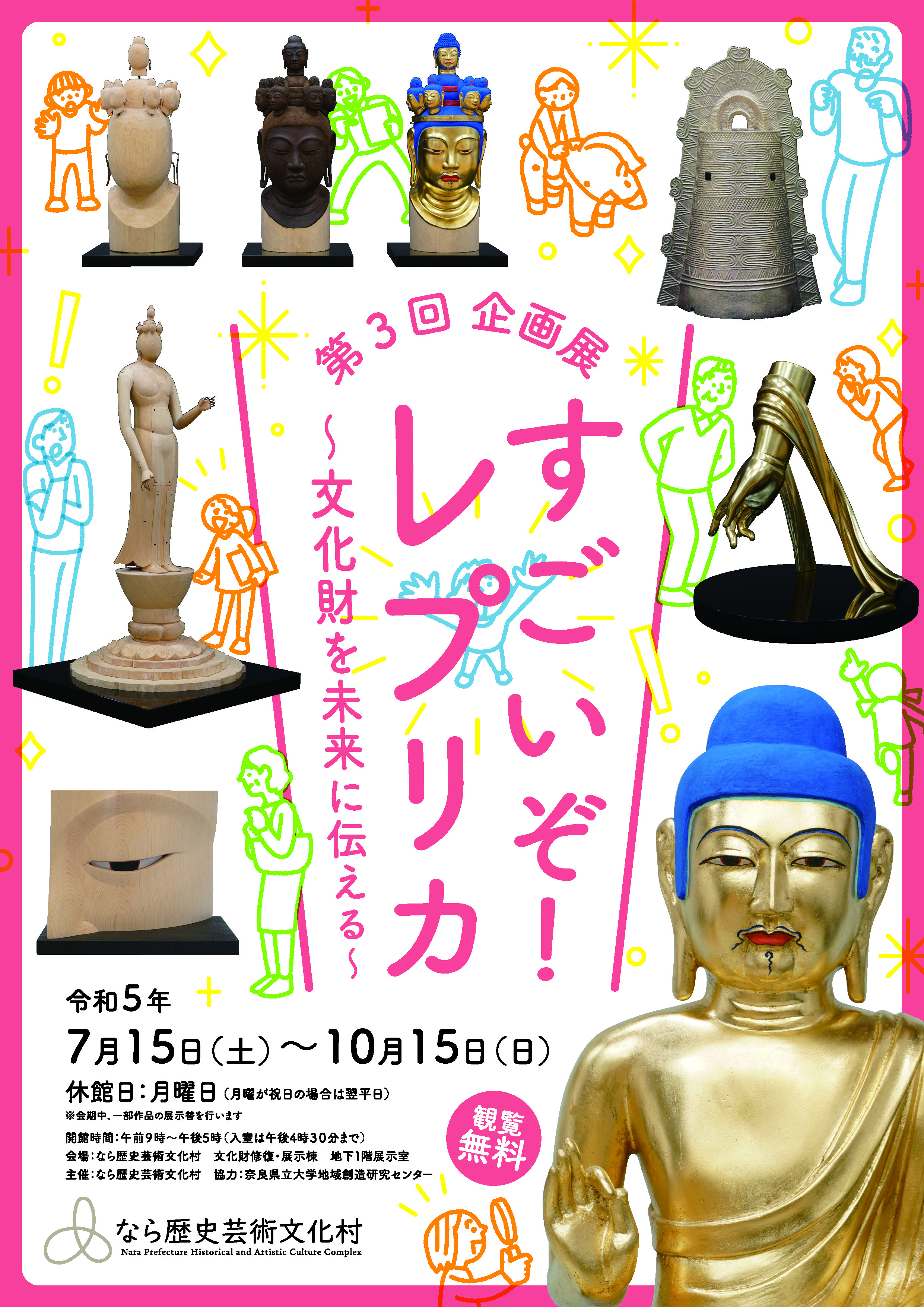 10月15日(日曜日)まで文化財修復・展示棟地下1階の展示室で開催中の第3回企画展「すごいぞ!レプリカ~文化財を未来に伝える~」は、奈良を代表する仏像や絵画、考古遺物などのレプリカを集めた、ちょっと珍しい展示です。