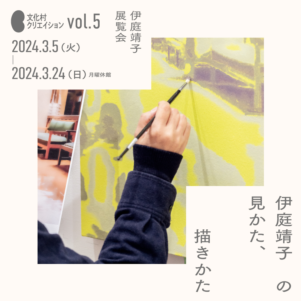 陶器やクッションといった具体的な対象を精細な油彩画で描きながら、それらの「質感」が前景化し、鑑賞者の記憶を呼び起こすような作品を制作する伊庭さん。奈良県内でモチーフを探し、3ヶ月間の公開制作を経て、展覧会を行いました。