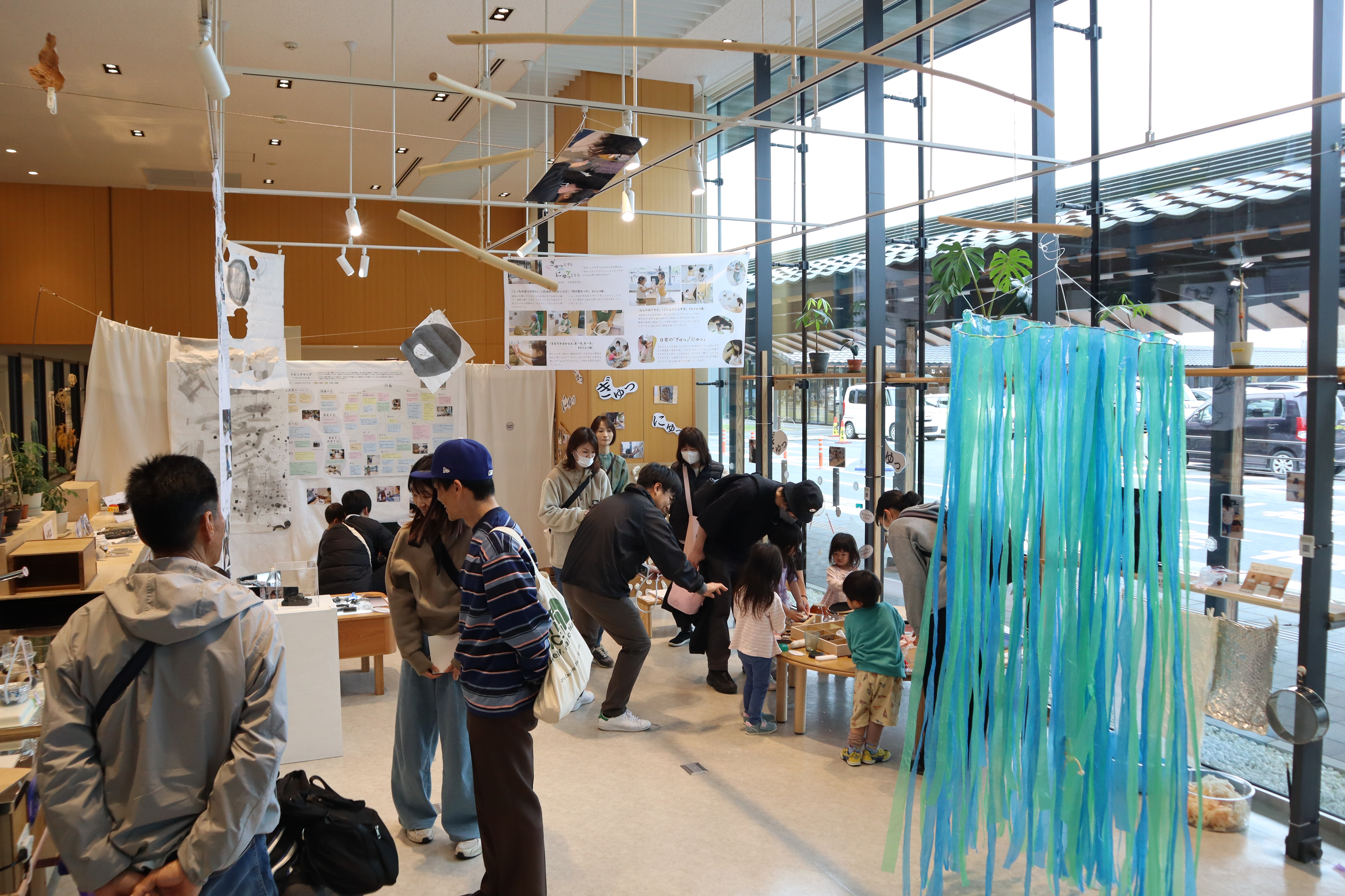 年度末には「そざいきち」「て でかんがえる」の1年間の取り組みをまとめた展覧会を開催しています。 会場では子どもたちの作品とともに、ミニ体験スペースを設けています。
