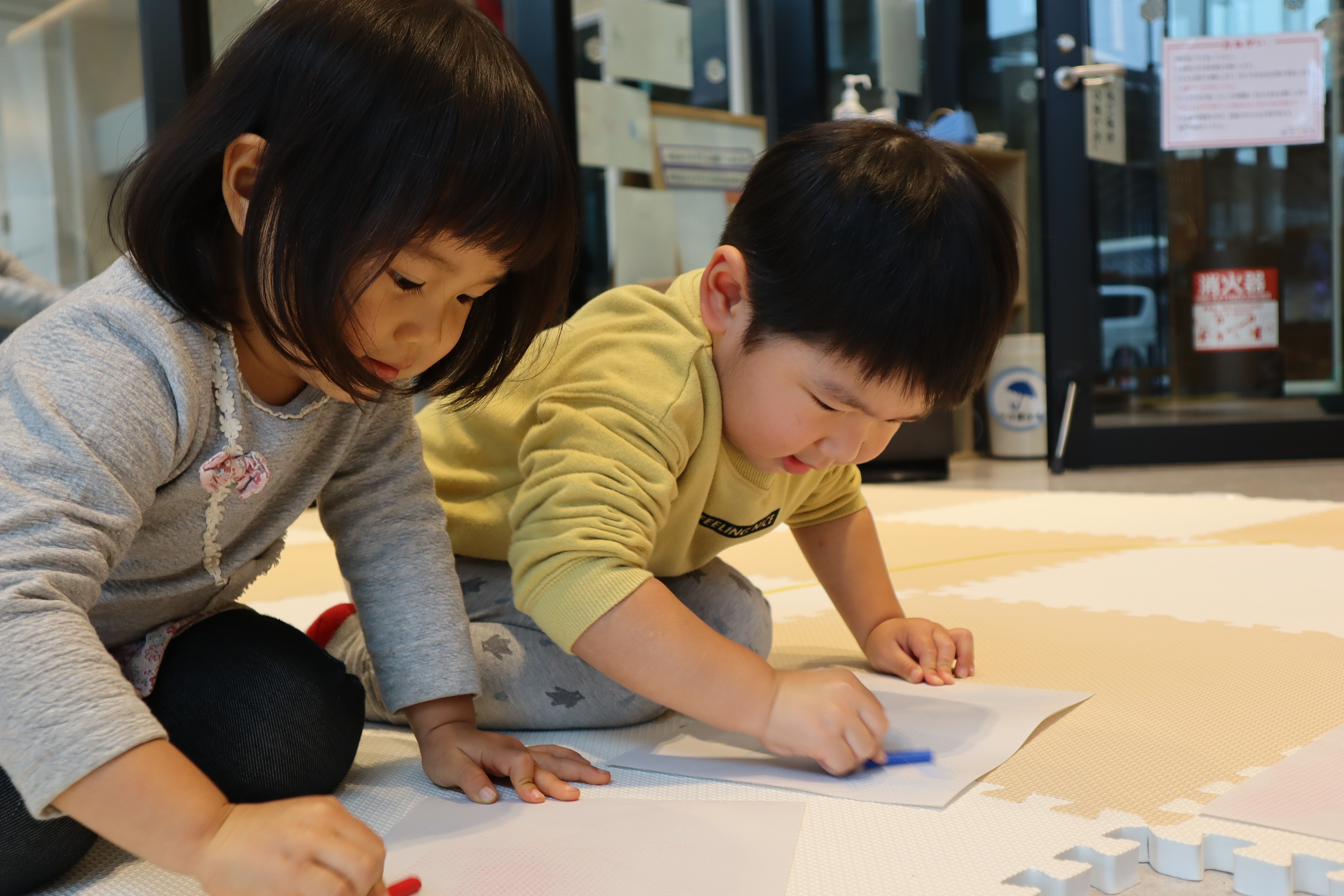 色々なものを擦って形を発見してみよう。形を組み合わせると絵ができるかな?