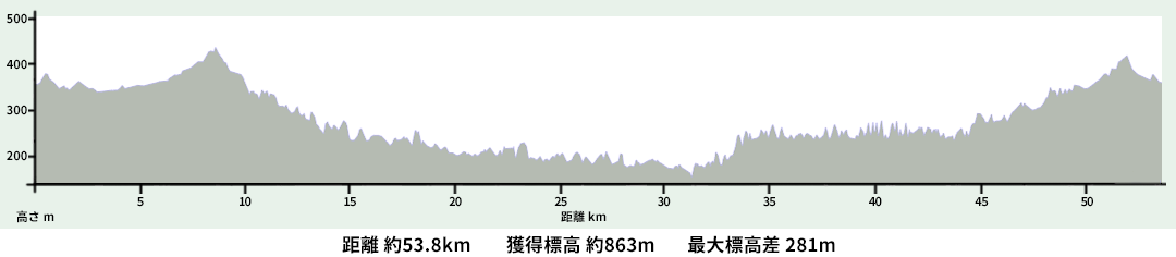 山を越え、川をわたりと雄大な自然を体全体で感じることのできる本格的なルート。ひっそりと佇む古社、最後のニホンオオカミ像、吉野川につながる清流高見川、自然に溶け込んだ津風呂湖と約54kmの絶景満喫コース。