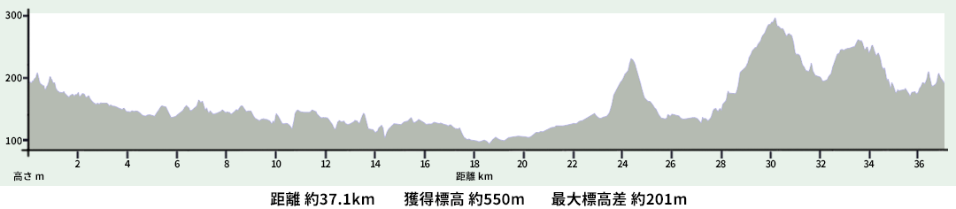 大台ヶ原を源流とする水量豊かな吉野川。その水を大和平野に送り込む吉野川分水の原点でもあります。豊かな自然、風土を育む吉野川沿いの風景を巡る約37kmのコース。