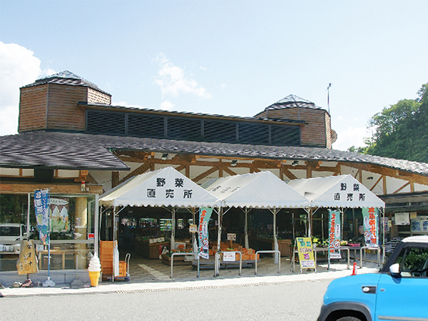 吉野杉を活用し、木の持つ温かさとうるおい空間を提供。店内には地元で採れた旬の野菜・花の直売所、地元の特産品の販売も行っています。お食事処もあり。