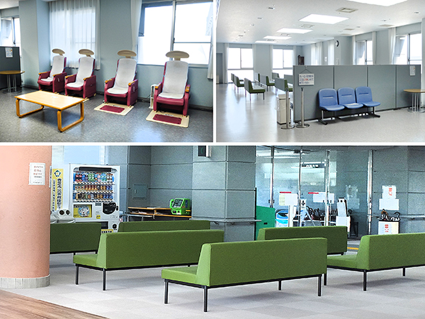 自動販売機や電位治療器等があり休憩コーナーが充実しています