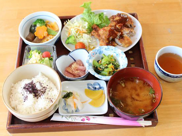 映画「殯の森」のロケ地にもなった田原地区にある喫茶店。地元で採れた山菜や野菜、卵、お米などを使った山菜定食が優しい味でおすすめです。