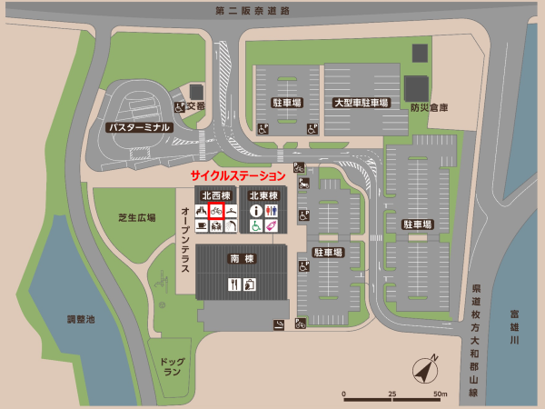サイクルステーションは北西棟にあります