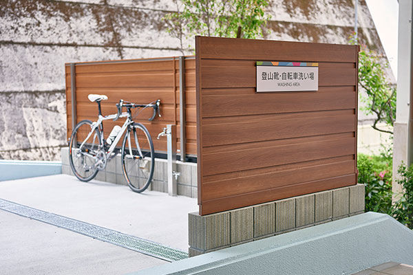 敷地内には自転車・登山靴の洗い場を設置