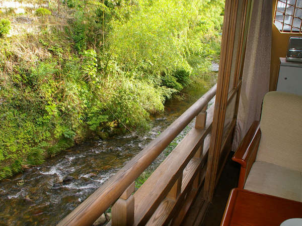 木造書院造の和室離れ。窓からは初瀬川の流れが眺められます