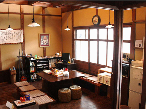 書道教室であった築百年の古民家を改装した「空海ご縁の宿」です。ロビ-や駐輪場も広く、サイクリストや世界の旅人が集うお宿です。