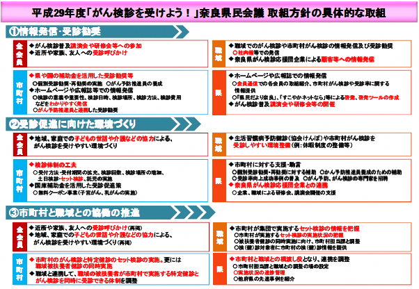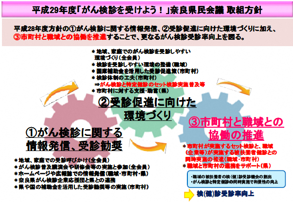 HOME > 予防する > がん検診 > 「がん検診を受けよう!」奈良県民会議 > 取組方針