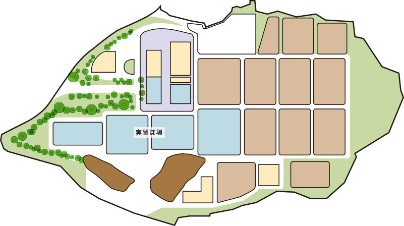 多数のハウス、露地ほ場のほか、快適な環境で学習できる農作業場などの施設が充実しています。