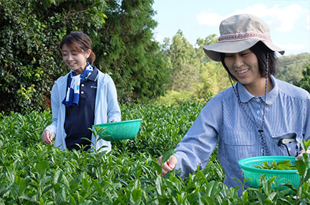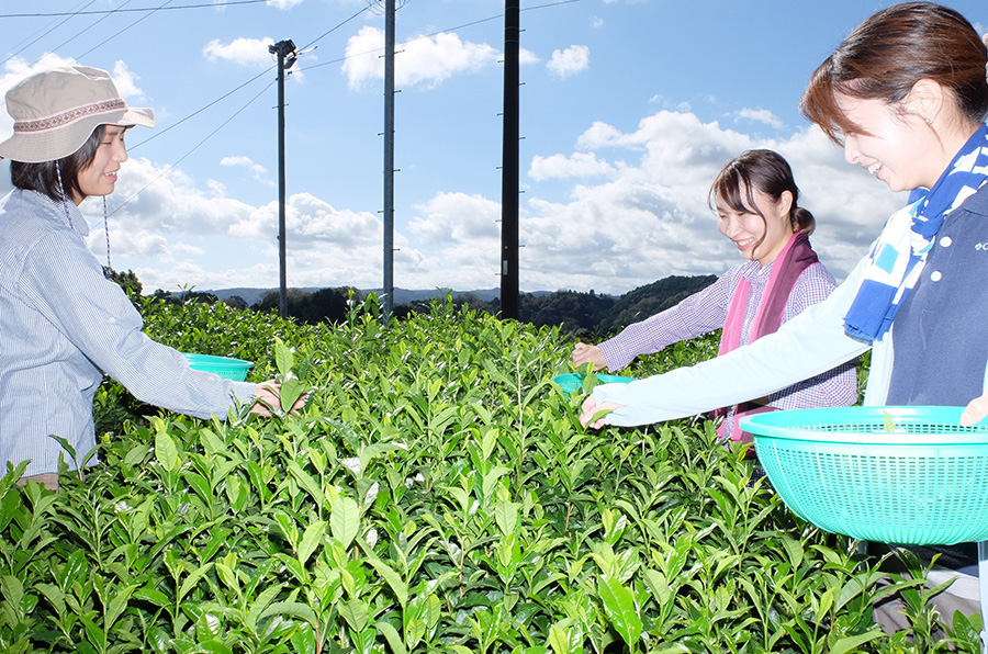 ここには元々製茶工場があったので、体験教室もお茶摘みからスタートしました。ただ茶葉を摘むだけでなく、製茶して、最後は自分で摘んだお茶にして飲んでいただく。自然の中で味わえる体験が好評で、毎年来られるリピーターさんもできました。最近では、地元のJAさんにもご協力いただき、団体のお客様が大型バスで来られることもあります。ご家族や友人グループで来られる方も多く、年齢層は幅広いですね。誰でも気軽に体験できるところが魅力なのだと思います。