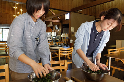 お客様をお迎えする時は、アットホームな雰囲気で接することを心掛けています。講師やスタッフも地元の農家さんや主婦の方たちですから、地元の人との交流も楽しんでいただけたら嬉しいです。