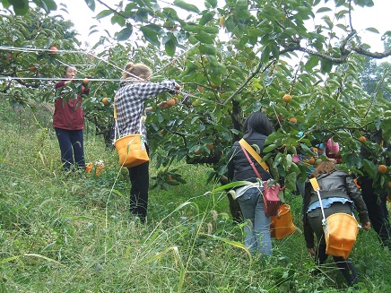 石舞台古墳の近くの柿畑で、歴史を感じながら柿づくりが体験できます。 (甘柿コースと渋柿コースがあります)