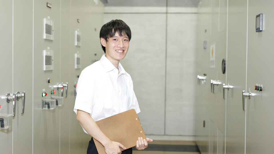 県庁舎内の受変電設備等の電気設備、放送設備、消防設備の維持管理、非常用発電機の試運転などを行っています。