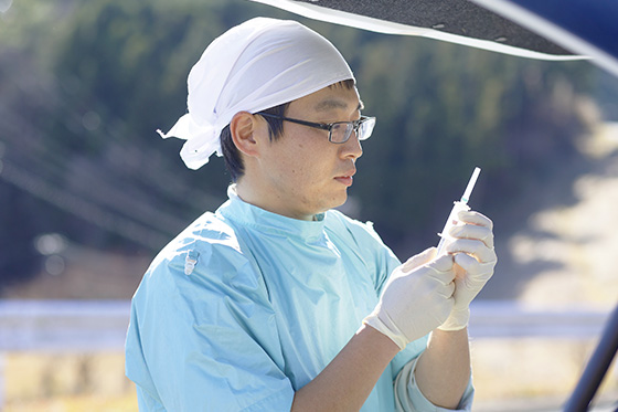 家畜保健衛生所では、家畜の伝染病対策と畜産振興の業務を行います。仕事の内容は多岐に渡り、牛、馬、豚、家きんなどの他に蜜蜂も取り扱い対象に含みます。日々農家の方と顔を合わせながら仕事をする機会が多く、県民とのつながりを実感することができます。