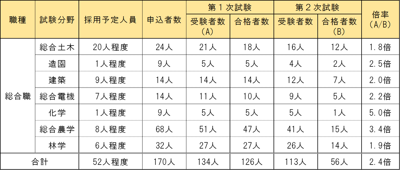 - 総合職(総合土木・造園・建築・総合電機(電気・機械)・化学・総合農学(農学・農業土木)・林学等)