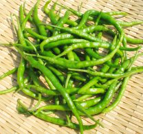 伏見群に属する辛トウガラシとしし唐との雑種から選抜されたと推察され、古くから自家消費用として作られてきました。太さ5mm程度と細身で長い形状、濃緑色で皮の柔らかい甘味唐辛子です。多収で、夏から秋にかけて多くの果実を実らせます。