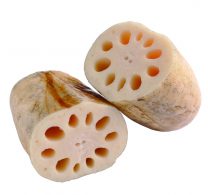 大和郡山市にあった筒井城の城跡やその周辺では、土質が柔らかく地下水も豊富な湿地帯であることから、古くからの質の良い蓮根が栽培されています。形態では節が長いのが特徴で、粘りが少なく、甘みと独特のシャリシャリ感があります。