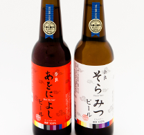 奈良発のクラフトビール誕生!さわやかな味わいのピルスナー「そらみつ」と、しっかりしたコクのレッドエール「あをによし」の2種類。