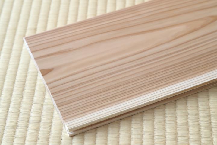樹齢約100年の吉野スギを使用しているのが「吉野杉の床」です。節が少なく美しい木目で自然塗料仕上げ、厚み15mm幅18cmの無垢材を「川上さぷり」と専属販売契約をしています。何より香りが良いんですよ。よく眠れる、ストレスが軽減されるということに、カビが生えにくいとか、大腸菌が発生しにくいということもプラスされています。お客様からの声でいえば「冬は温かく夏はベトつかない」ということをお聞きしており、私の家もこの床材ですが、家に帰れば冬になっても年中素足で気持ちいいですし、孫にも安心です。