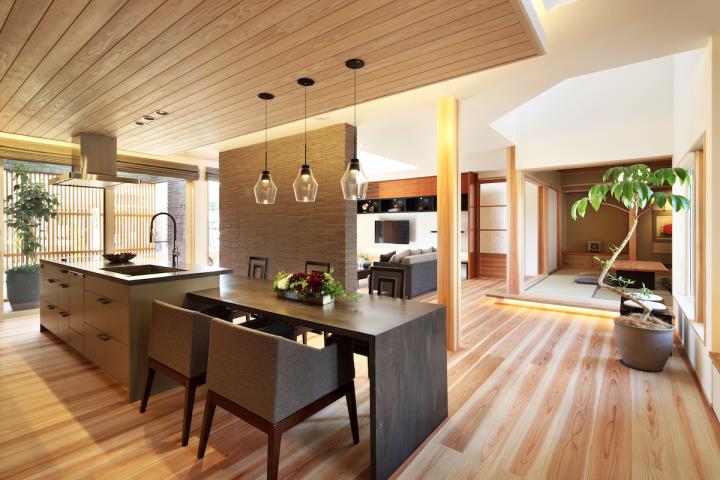 「代官屋敷の古民家再生」は、公称築200年としていますが、それは文献で遡ればの話で、実情はおそらく築300年の古民家。増改築を繰り返していたので歪みもありました。基礎部分だけを残して解体して再生までに約1年かけて行いましたが、単に綺麗にするだけではなく、耐震のこと、高齢の方が住むことも考えバリアフリー化のことも考えましたね。古民家は寒いので断熱材を入れて窓も全部サッシに変更するなど、今の時代に合わせた住空間にするには手間のかかる作業でした。しかし「川上さぷり」から樹齢200年の吉野スギを入れてもらったことで、快適な住空間と歴史的な景観を両立することができたのだと思います。