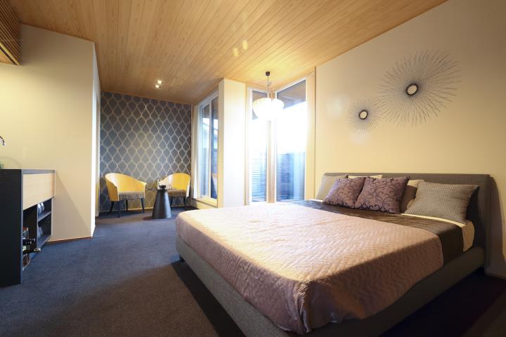 吉野スギを使う洋風建築の中に、和室も備えた、今の時代に合った開放的な住宅。優美なデザイン性といい、自然素材が使われているからこその居心地の良さといい、株式会社イムラの住まいづくりの集大成がここにあります。まずは訪れて、吉野スギの良さを実感してみるのがいいですね。