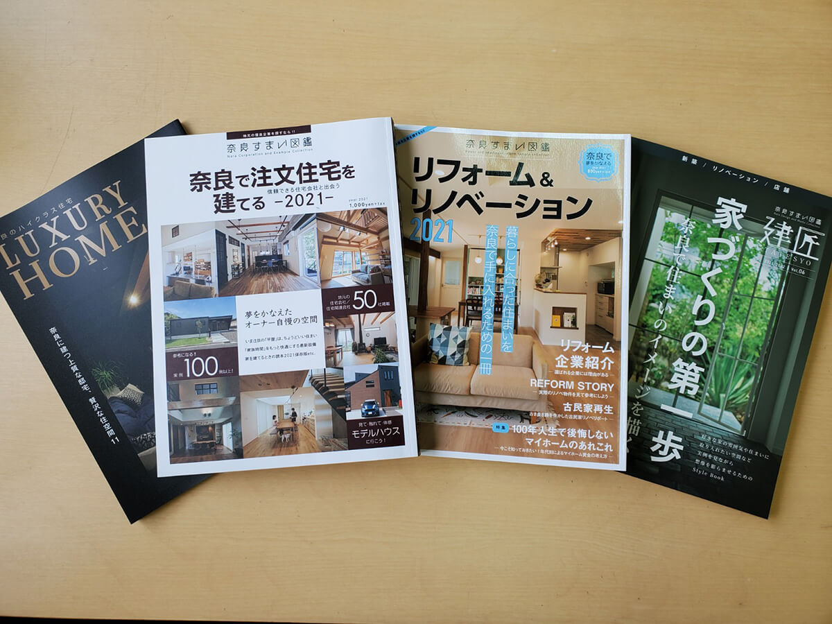 各会社のウェブページだけでなく、発行されている住宅会社の情報誌も参考になります。奈良で家づくりをされる方は、ぜひ奈良県の住宅情報を深く掘り下げて紹介している『奈良すまい図鑑』もチェックしてみてください。