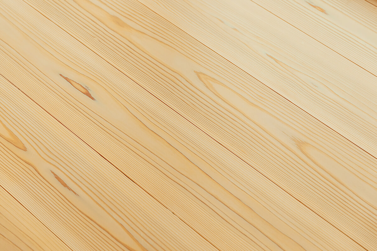 森野 赤みを帯びた色合いで、節が少なく、年輪が細かくて、強度に優れています。当モデルハウスは6年目になりますが、天然の油分が出て、床の色が飴色に変わってきました。こんな経年変化を楽しめるのも、無垢の木ならではと言えますね。