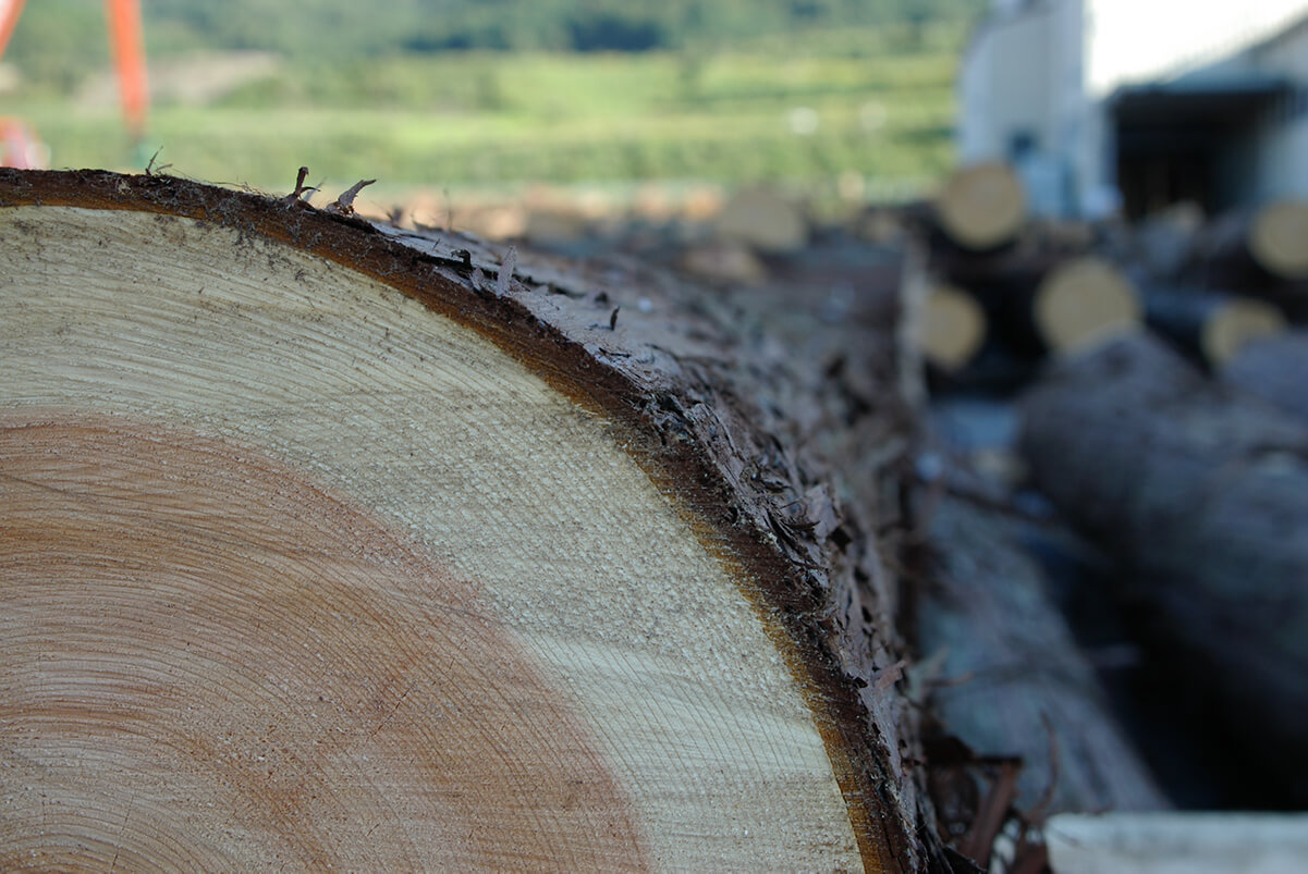 次に、向かったのは製材工場とストックヤード。工場では、文化財や神社仏閣、一般住宅に使用する原木の製材現場を見学することができます。