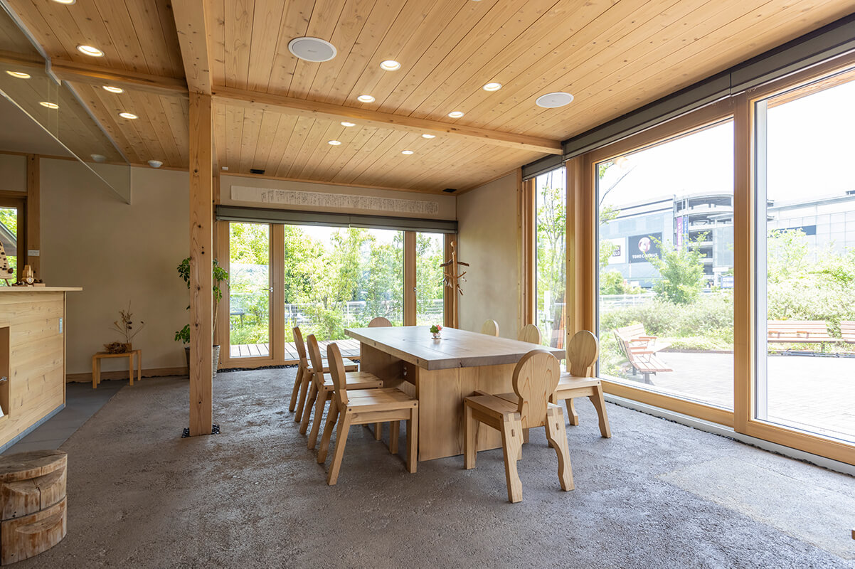実際に見て、触れながら、それぞれの木の特長を理解できるので、完成した部屋のイメージづくりに活かせる場所です。また、奈良の木でつくられた家具や照明器具、小物も展示されており、その使い勝手を確かめることができます。