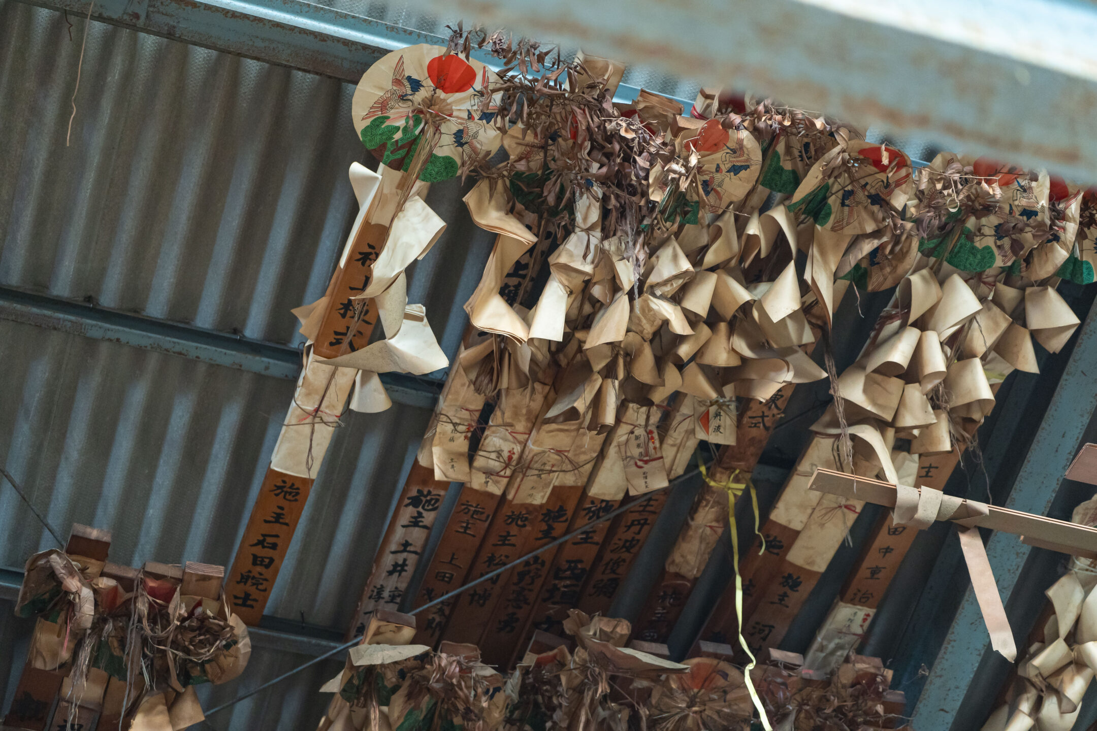 作業場の屋根裏に並べられた御幣
