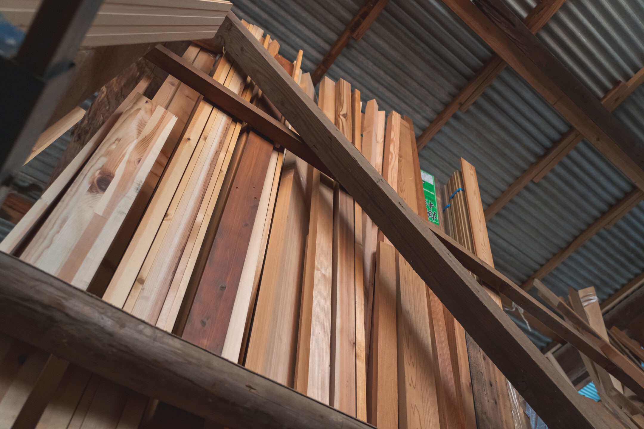 作業場にストックされている吉野材