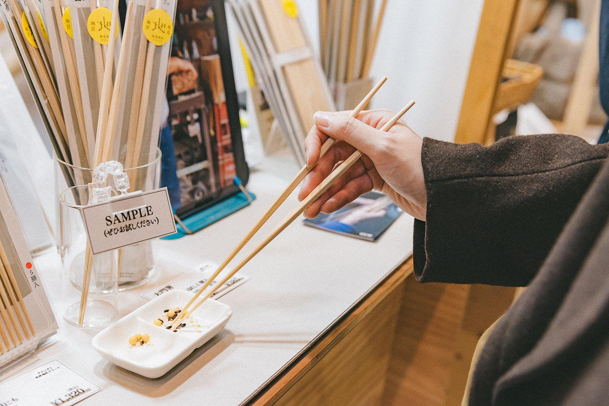 この新たなプロダクトを生み出した、奈良県吉野郡下市町で高級割箸を生産する廣箸(ひろはし)代表取締役の中磯末紀子さんと、同郡東吉野村に本拠を構えるプロダクトデザインレーベル、A4(エーヨン)主宰者でありデザイナーの菅野大門さん。さらには、中川政七商店で『地産地匠アワード』を担当する野村隆文さんにインタビュー。『大門箸』を展示した東京開催の『大日本市』で、奈良の木が今伝えるべきメッセージをたずねました。