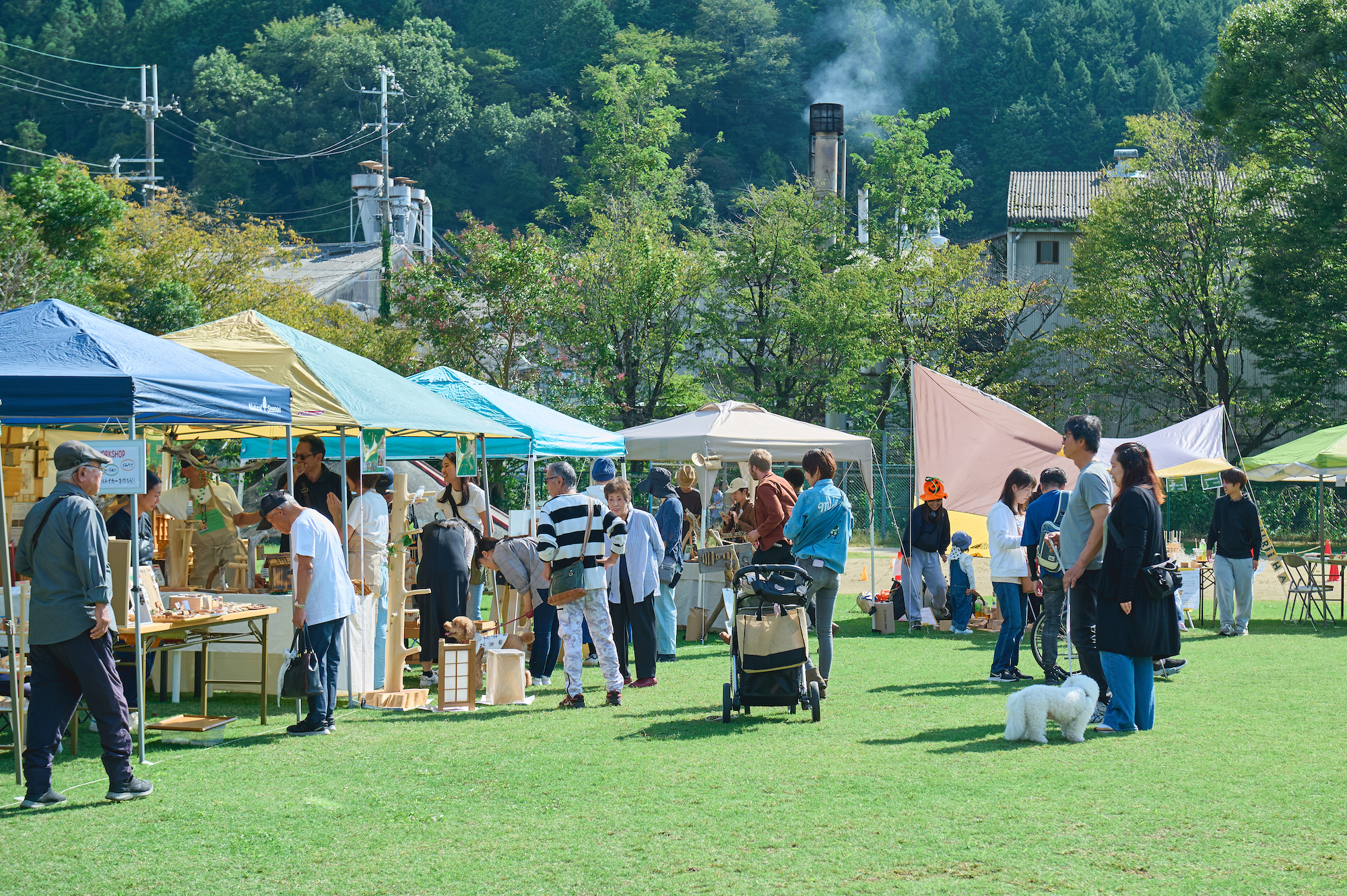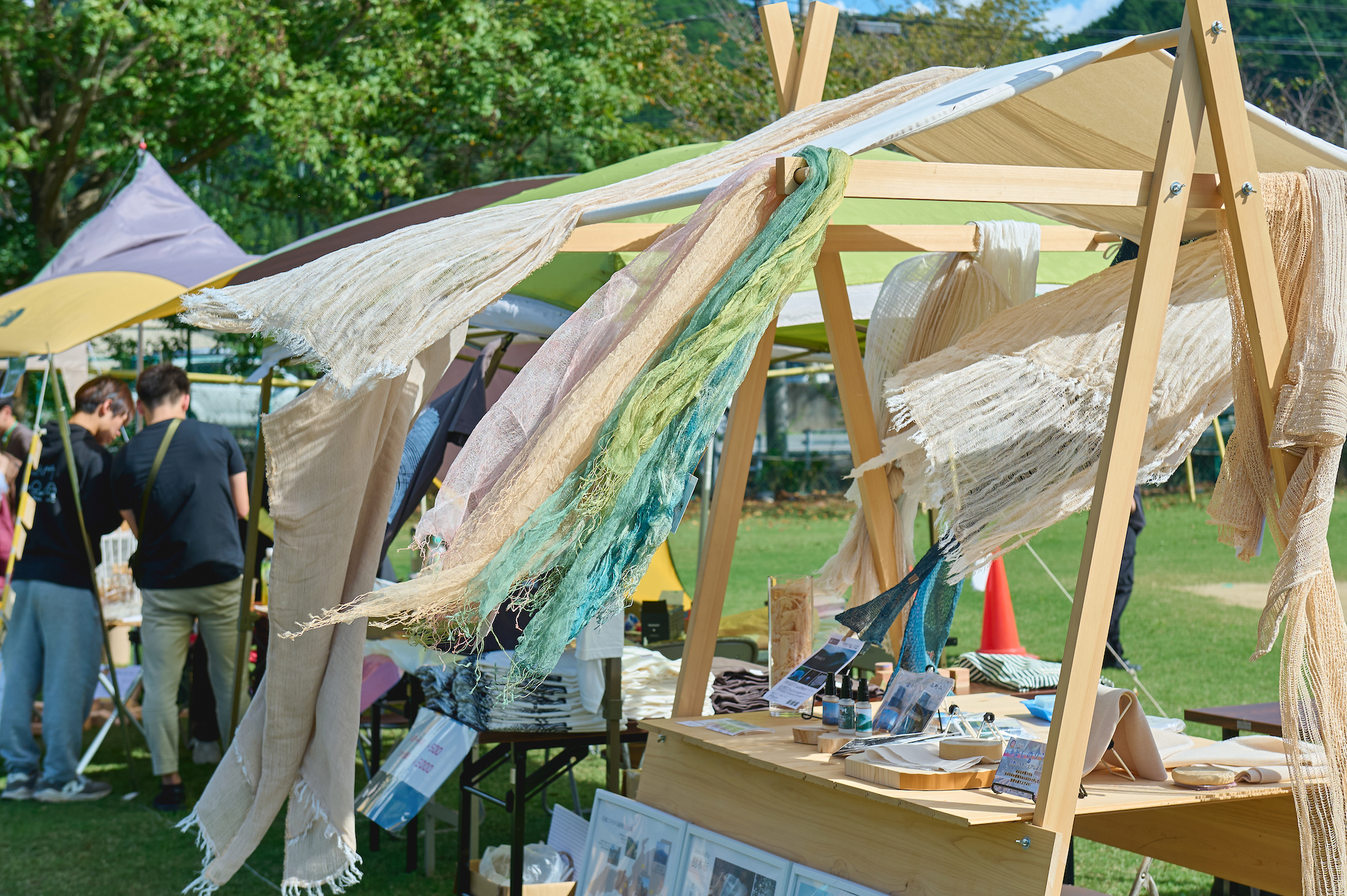 また、印象的だったのは木工体験が出来るワークショップブースが多いこと。まな板やスプーン、楽器などを作れるブースが用意されていて、親子で参加されている方も多かったです。会場にはたくさんの人が訪れているのですが、ちっとも混雑した感じがしないのは吉野ののびやかな自然のおかげ。ものづくりに没頭したり、木工作品を買い求めたり、訪れた皆さんは思い思いの時間を過ごしていました。