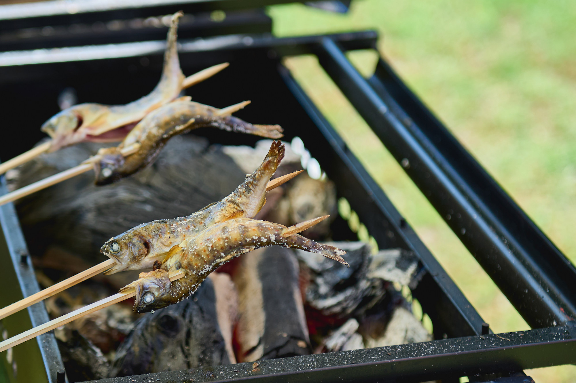 吉野貯木場をくまなく歩き、メイン会場に戻ってくると、ちょうどお昼どきで飲食店ブースやキッチンカーからはなんともいい匂いが漂ってきます。『よしのウッドフェス』のイベントを企画・運営する吉川さんがおすすめしてくれた「和菓子工房 雀堂」の「木の粉団子」に挑戦。木の香りとほろ苦さが口の中に広がるはじめての味に出合えて、その場に居合わせた人との会話が弾みました。
