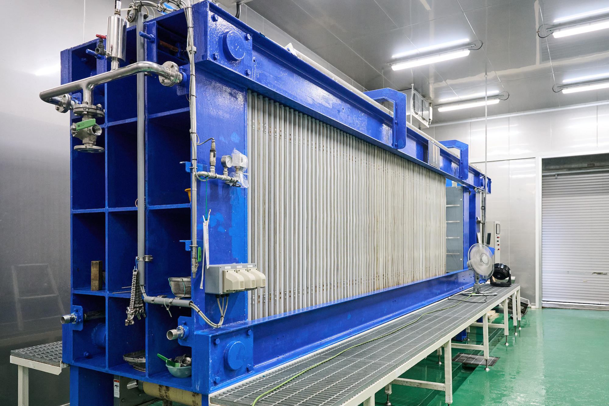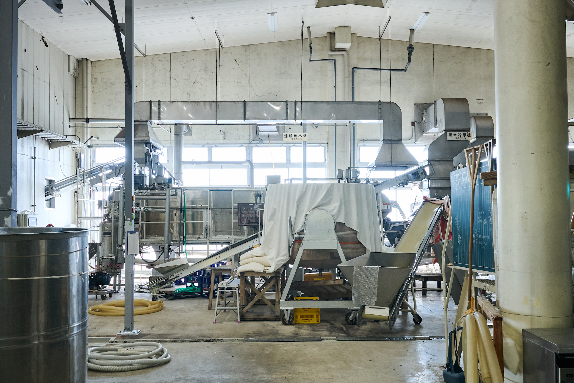 発酵が進んだもろみは大きなアコーディオンのような圧搾機で搾られ、清酒と酒粕に分けられ、お酒ができあがります。今回見学させていただいた9月下旬は今年の酒造りが始まる直前。実際のお酒造りの作業を見ることはかないませんでしたが、機械の稼働準備などが進められており、いよいよこれから今年の酒造りが始まるのだという空気感が伝わってきました。