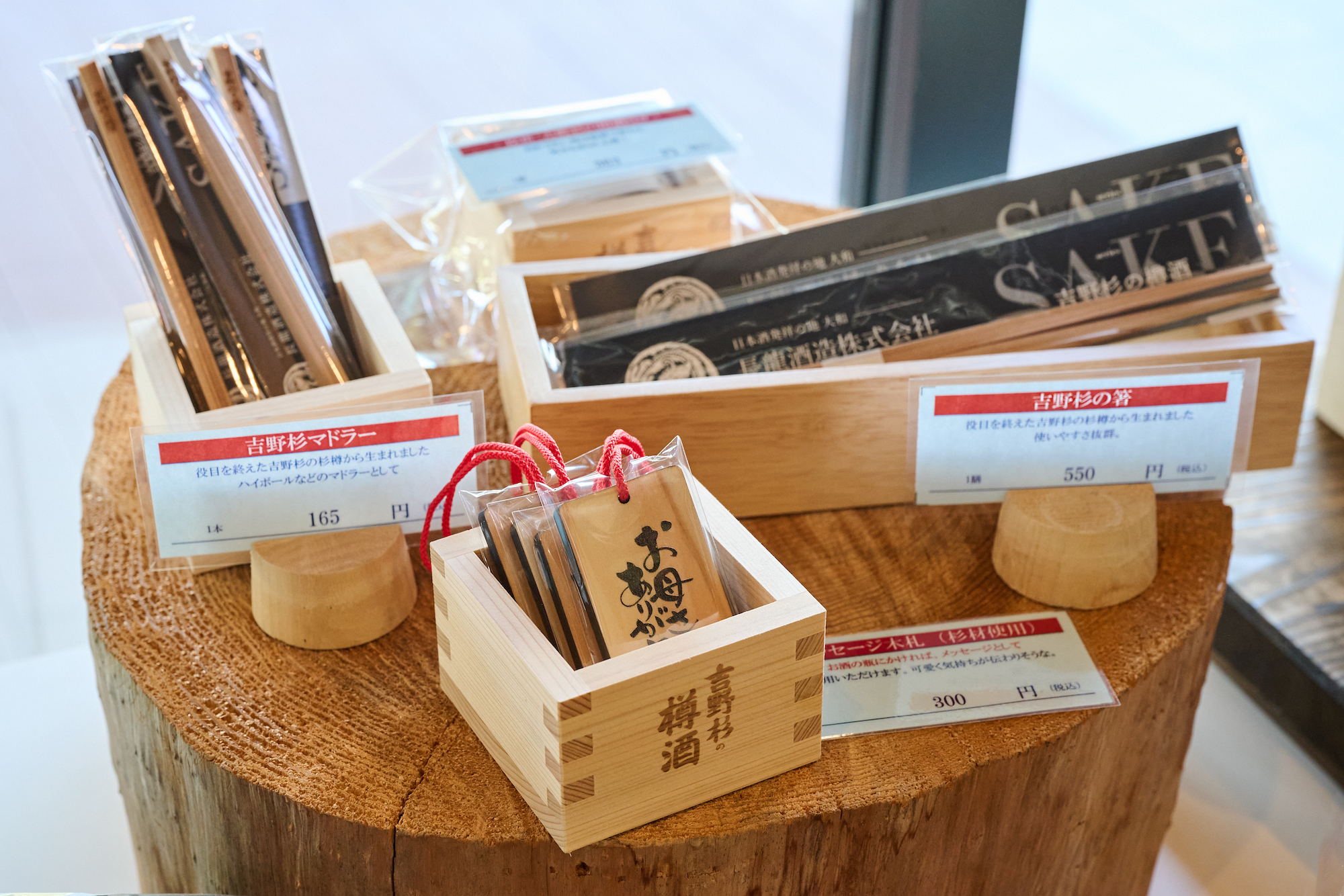 吉野杉の酒樽を再利用した長龍酒造オリジナルグッズ
