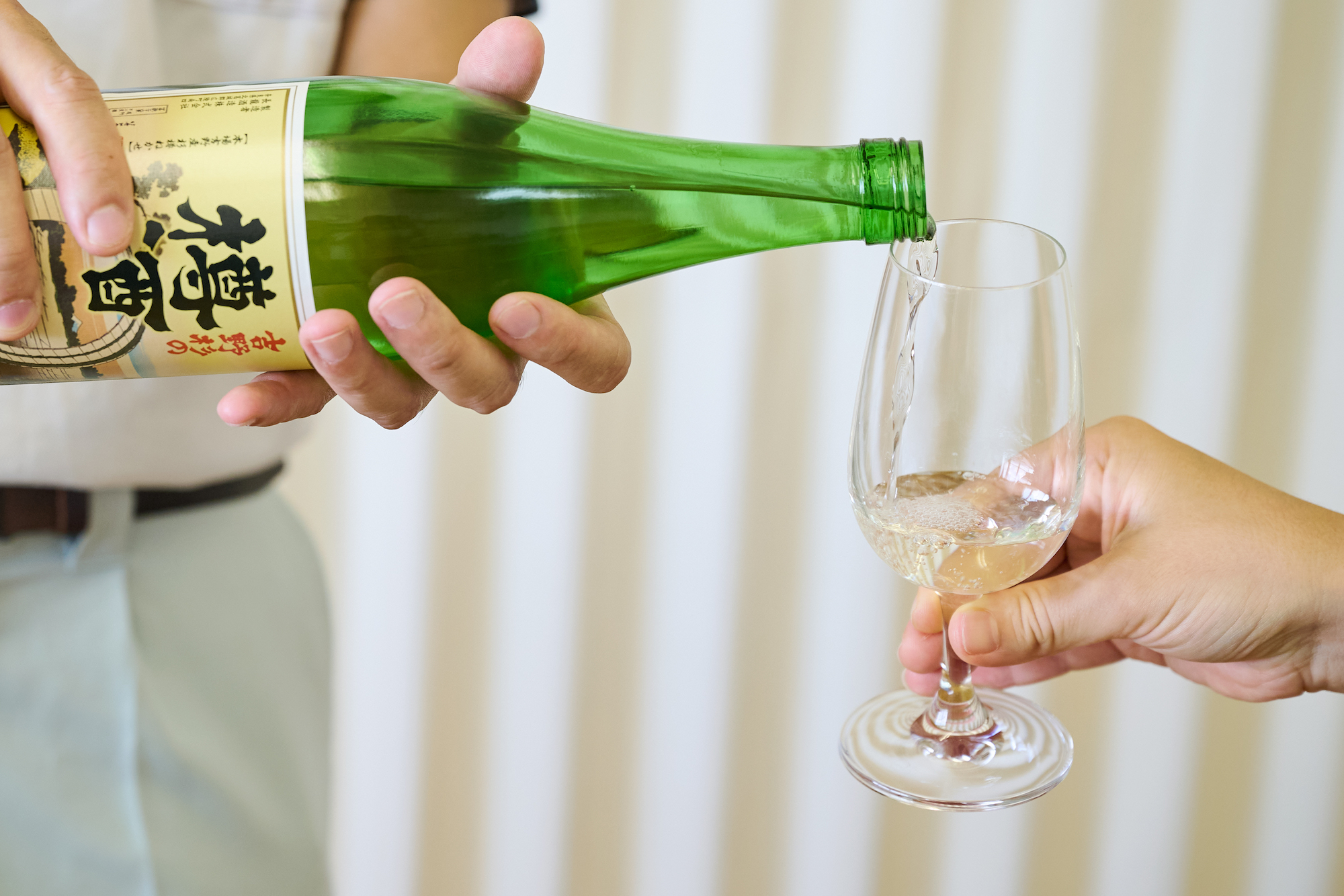 酒蔵見学の後に樽酒の試飲をさせていただきました。まずは定番の『吉野杉の樽酒』から。ひと口含むと、ほんのり甘い味わいとともに吉野杉特有の香りがふわっと広がります。「焼き鳥などと相性が良くて、口の中の脂をすっきり流してくれます」と藤田さん。次は『吉野杉の樽酒 生囲い』。春から夏にかけての期間限定品で、さっぱりとした口当たりのやや軽めの飲みやすい感じです。