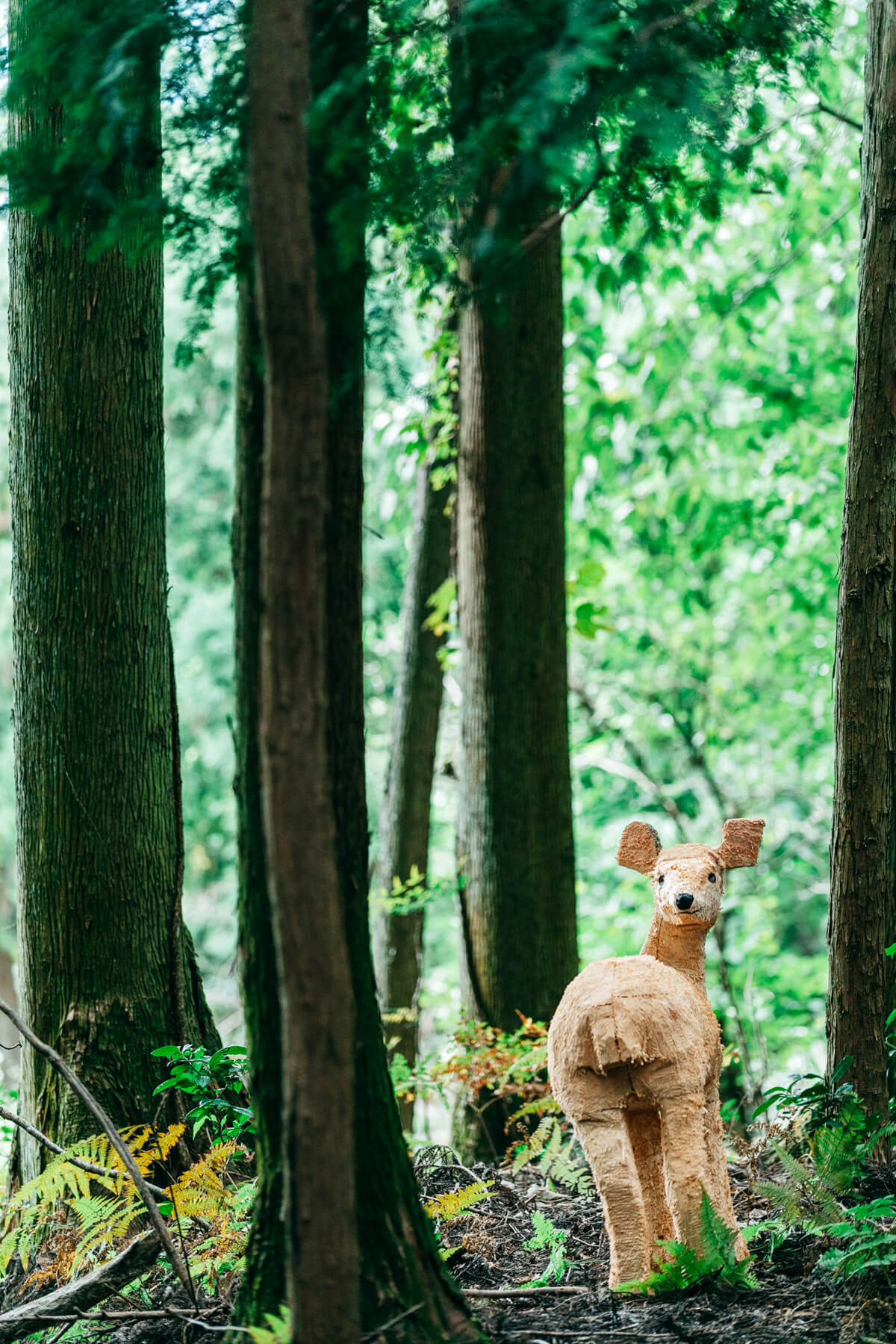 齋藤:そうですね、あと今回、奈良の木を使う作品を通して、人とつながるということもありました。吉野エリアでアーティストの木村充伯さんが『鹿が見てる』という鹿をモチーフにした作品を吉野ヒノキで制作されたんですね。木村さんが吉野町の下千本の駐車場の前でテントを張って、チェーンソーで朝から晩まで木を切って作業していると、通りがかりの人が「何してるの?」と話しかけてくれたりして、地元の方々との関わりができていったそうです。そうすると会話の中から吉野町のことも少しずつわかってくる。だんだんネットワークもできて、僕たち運営チームや奈良県の職員の皆さんだけでは届けられない、周辺住民の方々にもアーティストのメッセージが自然に届いていったと思っています。これは、大きなことですよね。