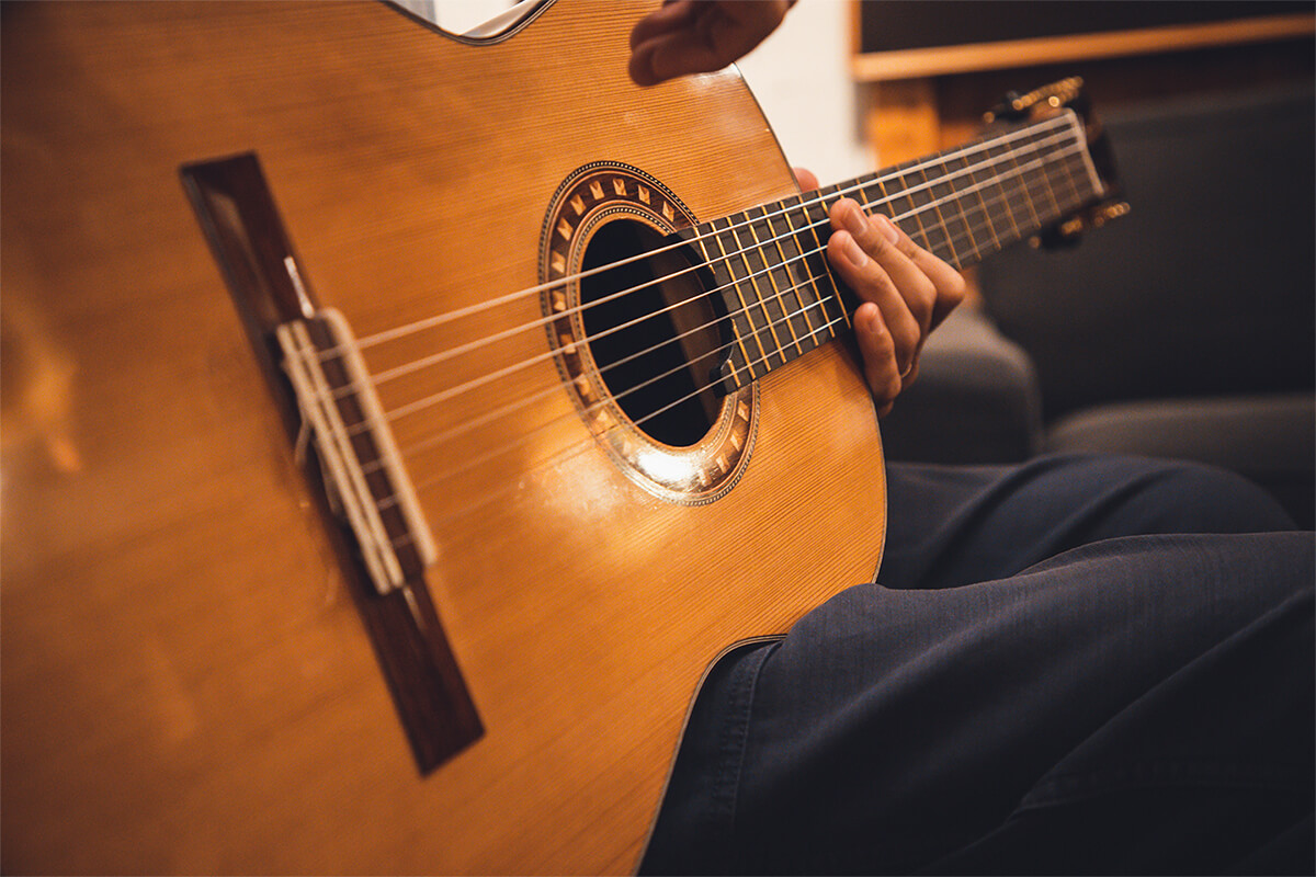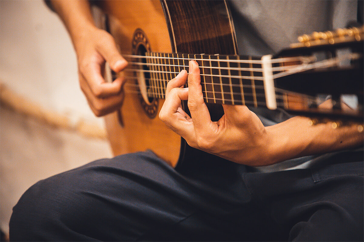 ギターを選ぶときは、その材質にもこだわるという関口さん。吉野杉クラシックギターの弾き心地はもちろん、材質によるギターサウンドの違いなどについてお伺いしました。