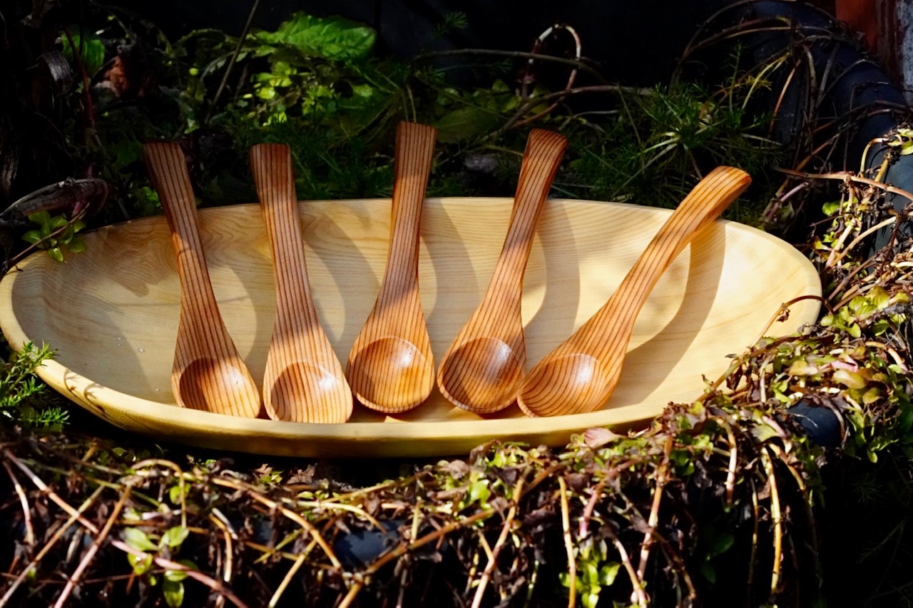 奈良県宇陀市で厳選した杉や桧などを使い、心を込めて丁寧に木製食器を製作している『有限会社津田瑞苑』。自社で開発した、無機質・無溶剤の液体ガラス「ガラスウッドコート」を木製の食器に染み込ませ、ずっと使い続けられる品質に仕上げています。「ガラスウッドコート」は、「食品衛生規格基準」適合で安心安全なだけでなく、透気性・透湿性があるため、木の呼吸を妨げず、食器には木の香りもしっかりと残ります。