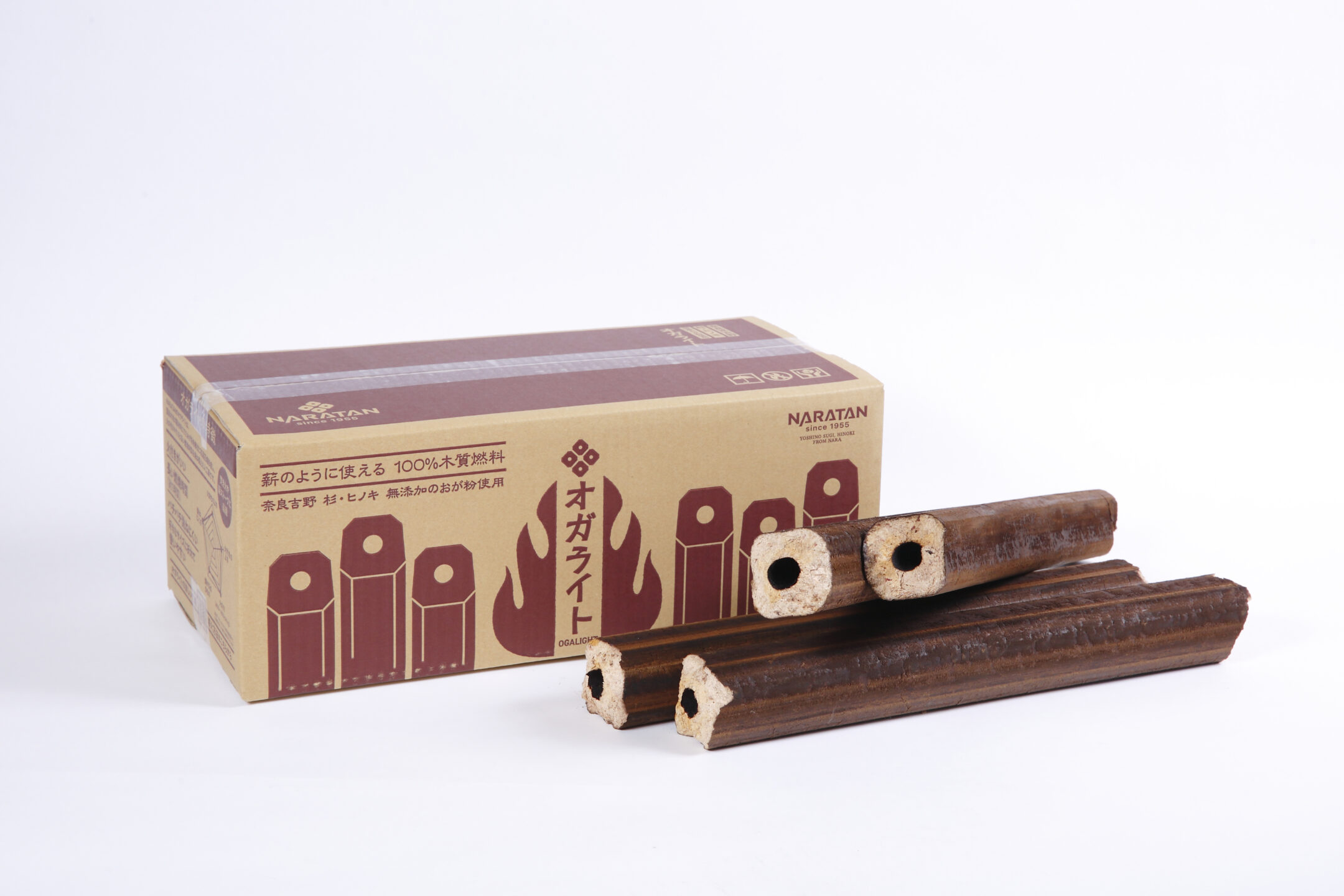 「オガライト」は、火付きがよく、美しい炎と長い燃焼時間を兼ね備えた扱いやすい人工薪として、焚き火や薪ストーブにも最適です。