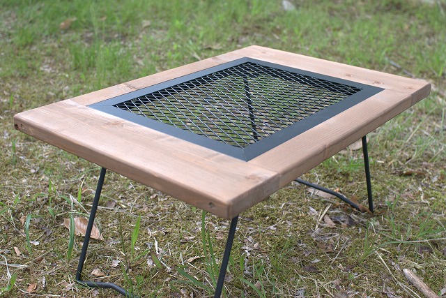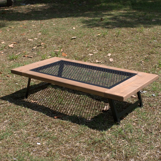 「アウトドアテーブル」の天板は金網と吉野桧で作られています。スタイリッシュな金網部分とやさしい質感をもつ木の部分のコントラストがおしゃれです。折りたたむと、持ち運びがしやすいコンパクトサイズになります。高さが高いものと低いもの、2種類あるので用途に合わせて好みのものを選べます。キャンプなどのアウトドア時はもちろん、コンパクトなサイズ感や、金網のメッシュ部分が、ノートパソコンが熱くなるのを防いでくれるので、屋内でのちょっとした作業にもおすすめです。