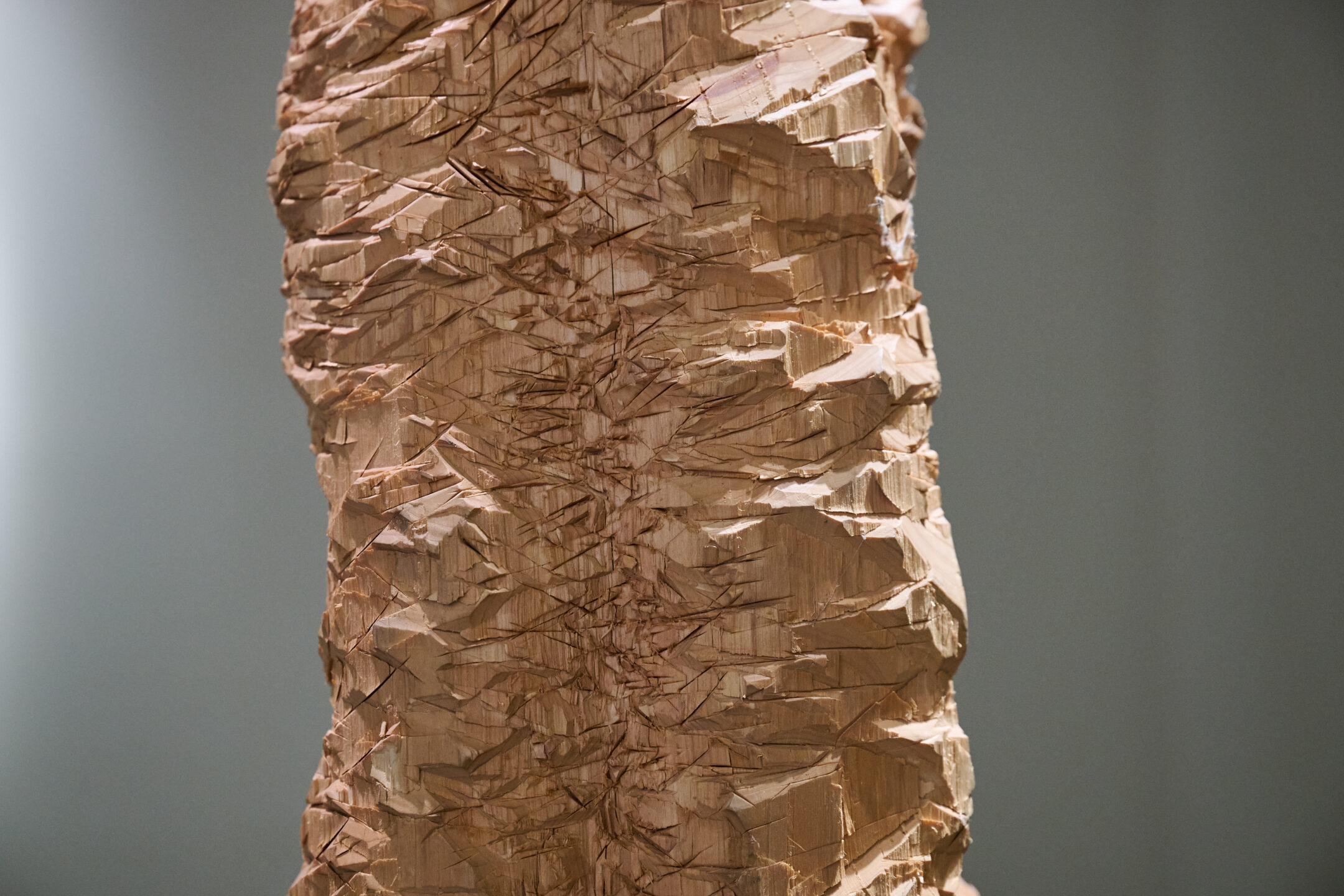 そもそも僕の作品は、形はもちろんですが木が持つエネルギーの流れが主張しています。外形を生み出している木の中にある揺らぎ、エネルギーを彫っていますから。結局それを生み出すのには桧がすごくいい、とくに川上村の桧がいいんですよ
